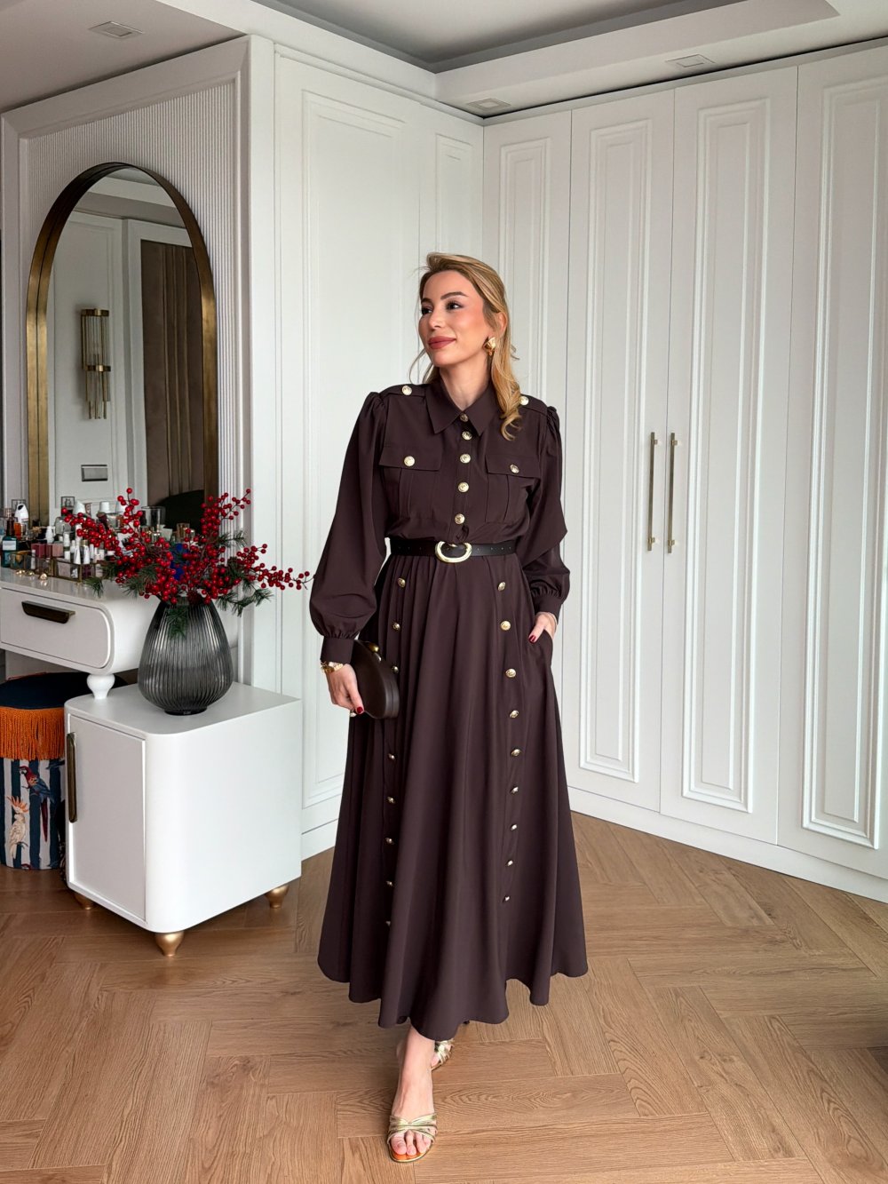 Elbise Yarıya Kadar Düğmelidir.