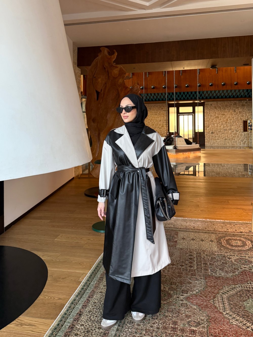 Trençkot İki Farklı Kumaş Detaylıdır.