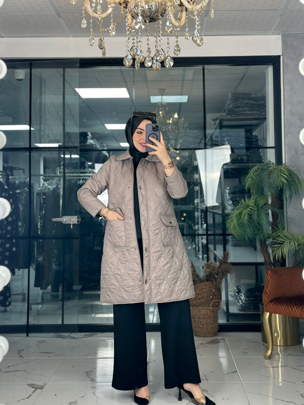 Kumaşı kapitone mont kumaşıdır. Önü çıtçıtlı ve gizli fermuarlıdır.