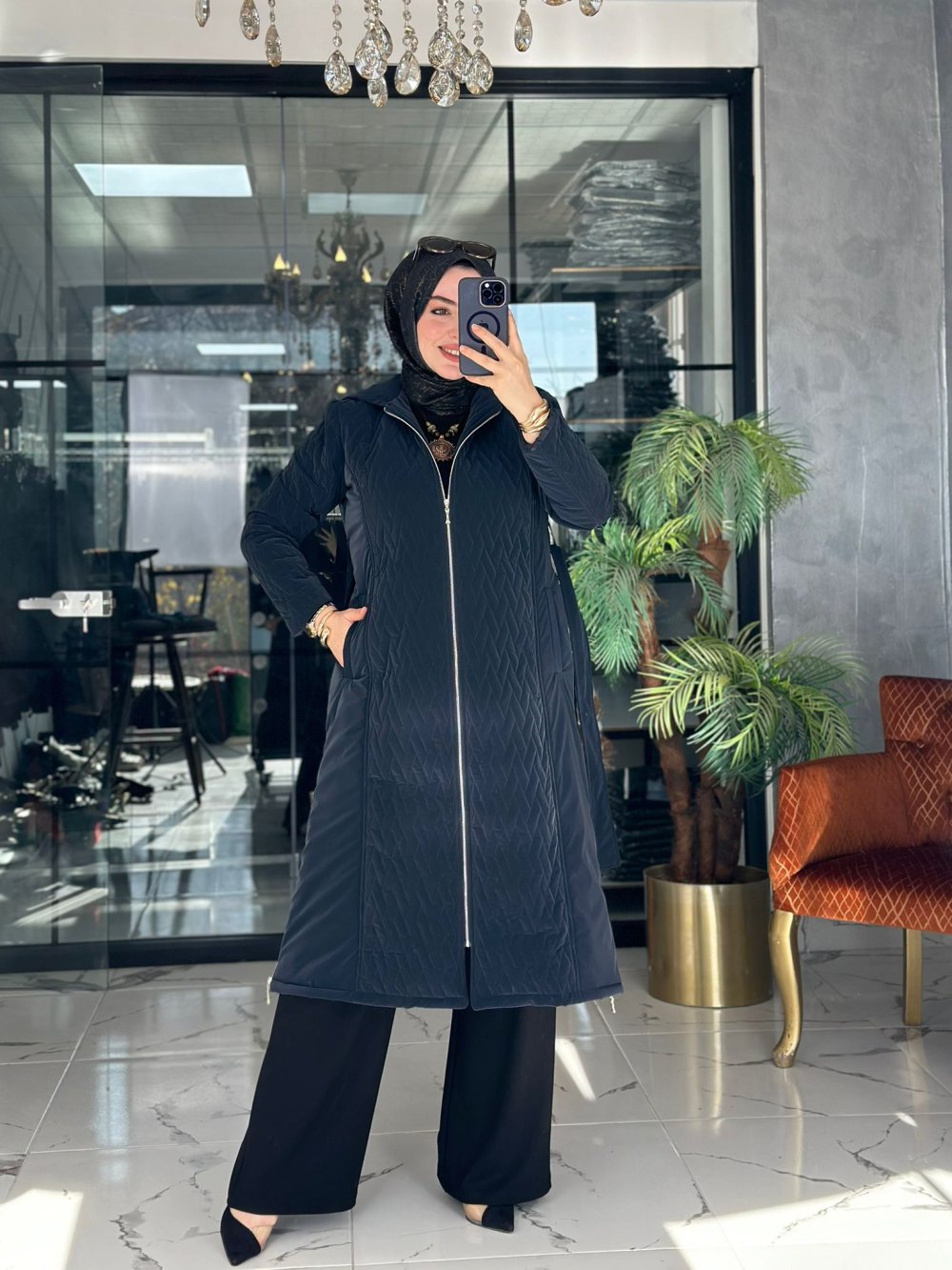 Kumaşı kapitone mont kumaşıdır. Önü fermuarlıdır. Kapüşonu çıkmaz.