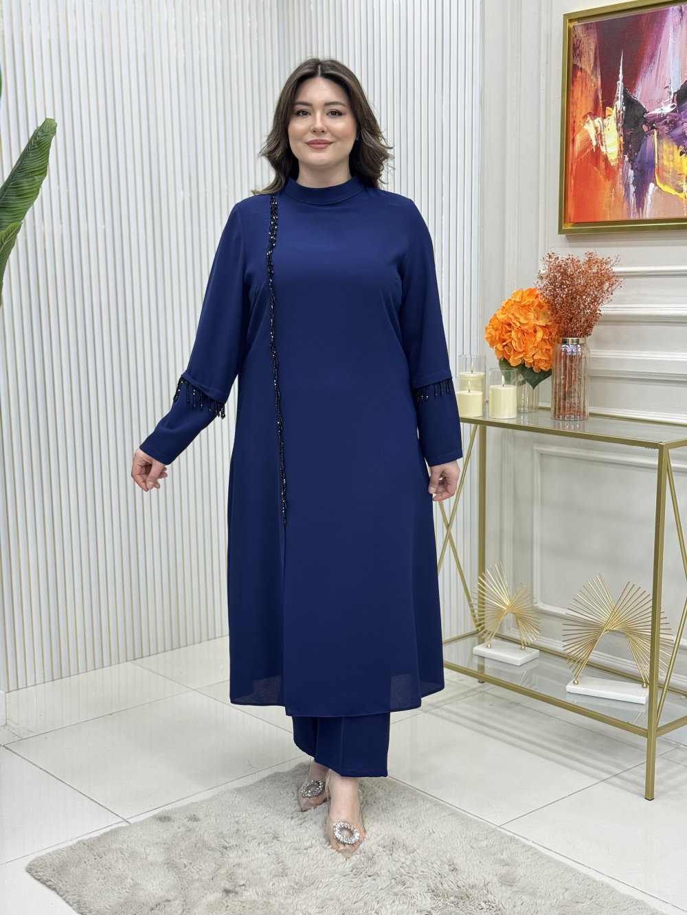 Krep kumaştır, taşlıdır.
