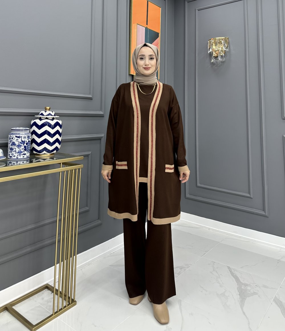 Aslı Tesettür Üçlü Takım- Kahve