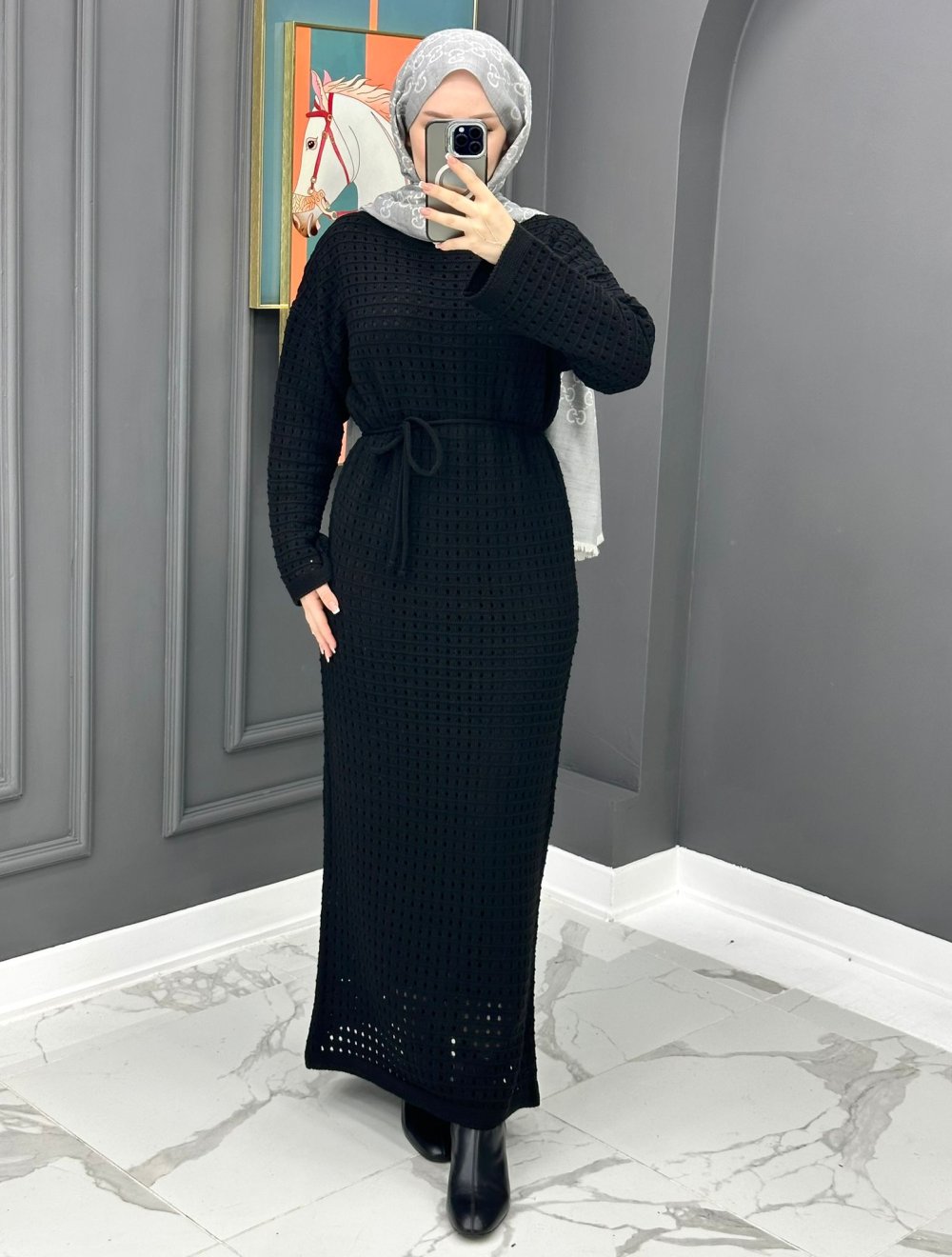 Astarlı Triko Elbise - Siyah