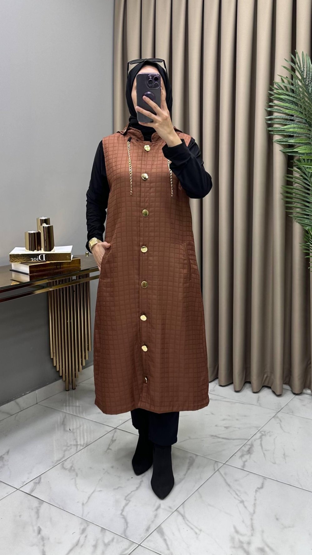 Aylin Kapitone Yelek Kahve