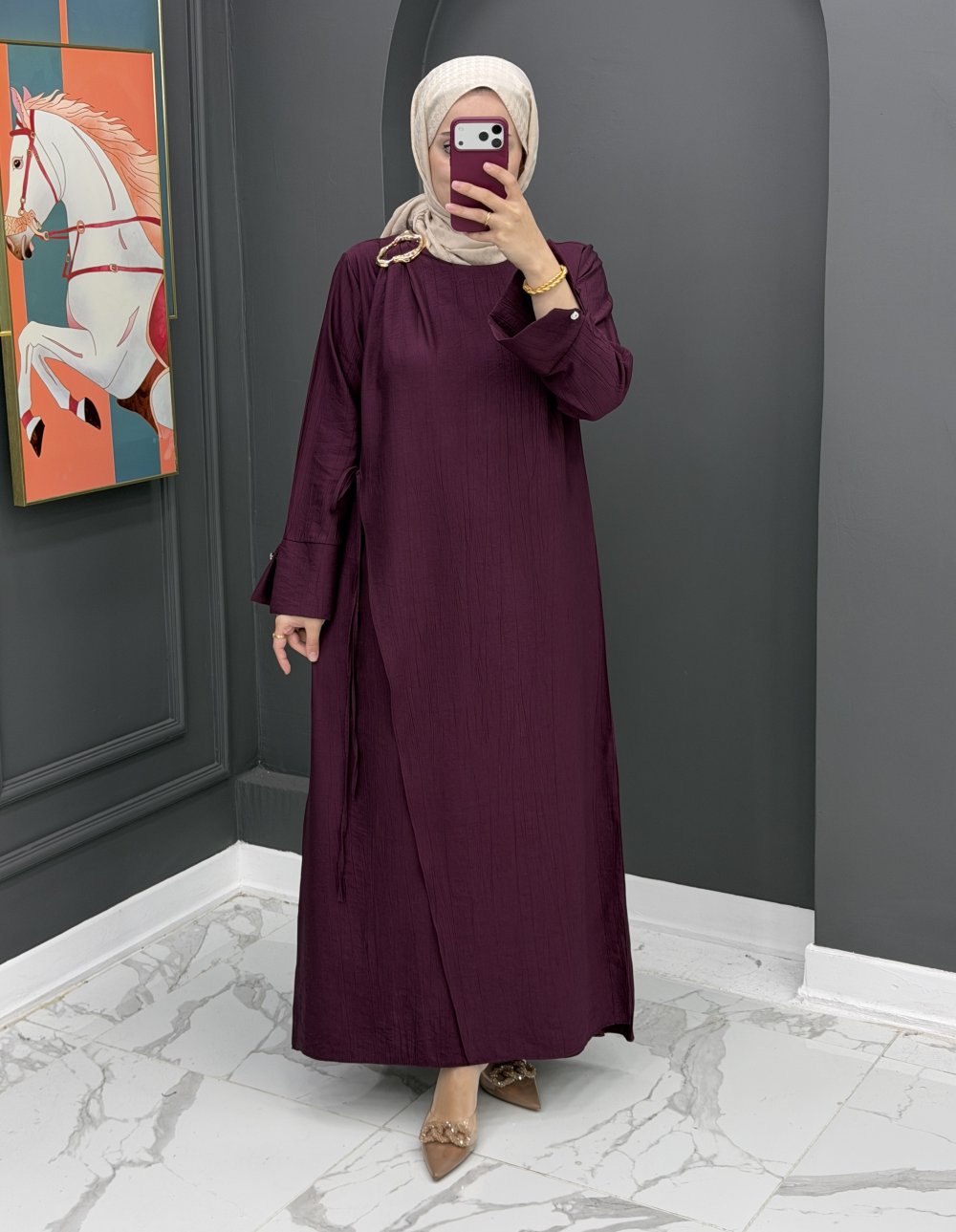 Ayperi Uzun Elbise - Mürdüm