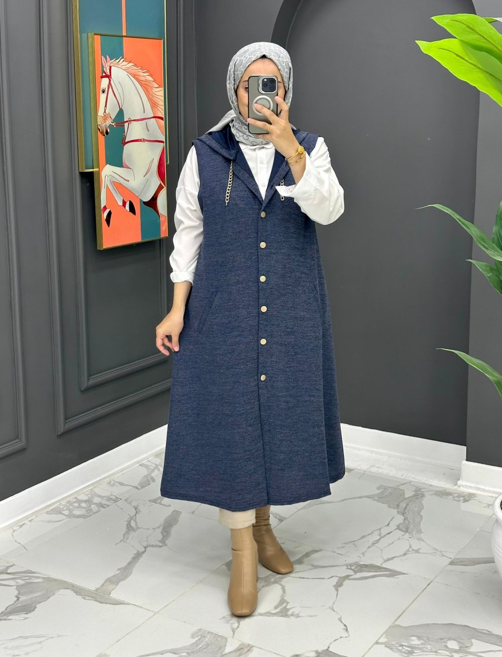 Aysel Uzun Yelek - Lacivert