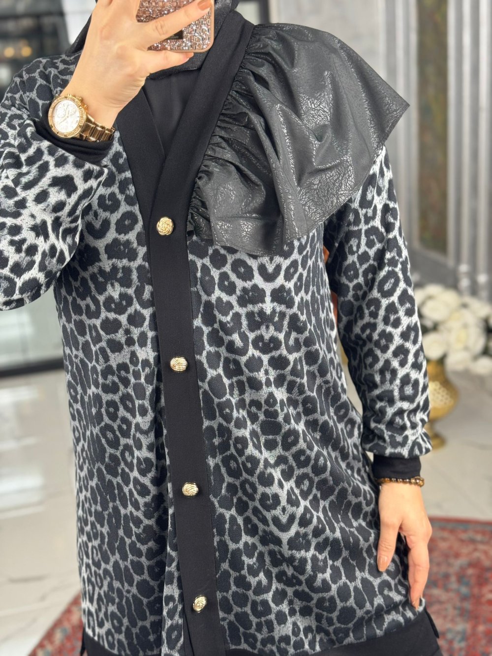 Örme Kumaştır. Sol Omuz Pelerinlidir. Düğmelidir