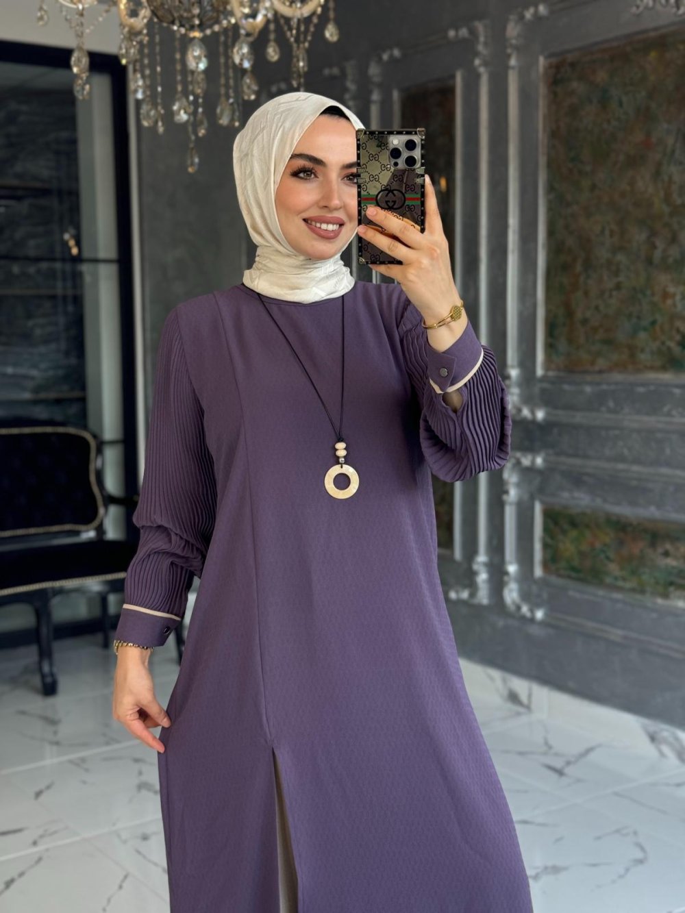 Kumaşı ayrobin kreptir. Pantolon beli lastiklidir. Arka kısmı düğmelidir.