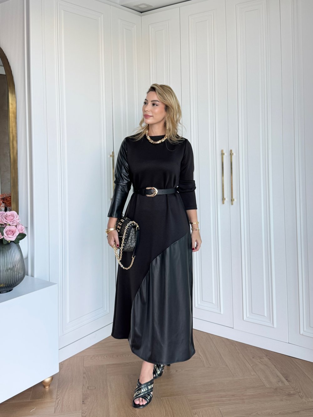 Elbise  1.Sınıf Deri Kombinli Oysho Kumaştır