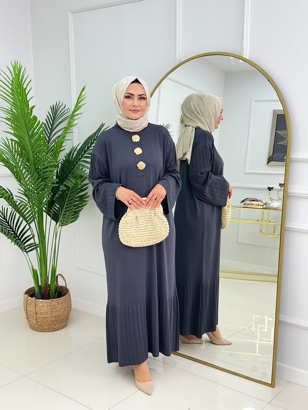 CANSU DÜĞMELİ ELBİSE - ANTRASİT