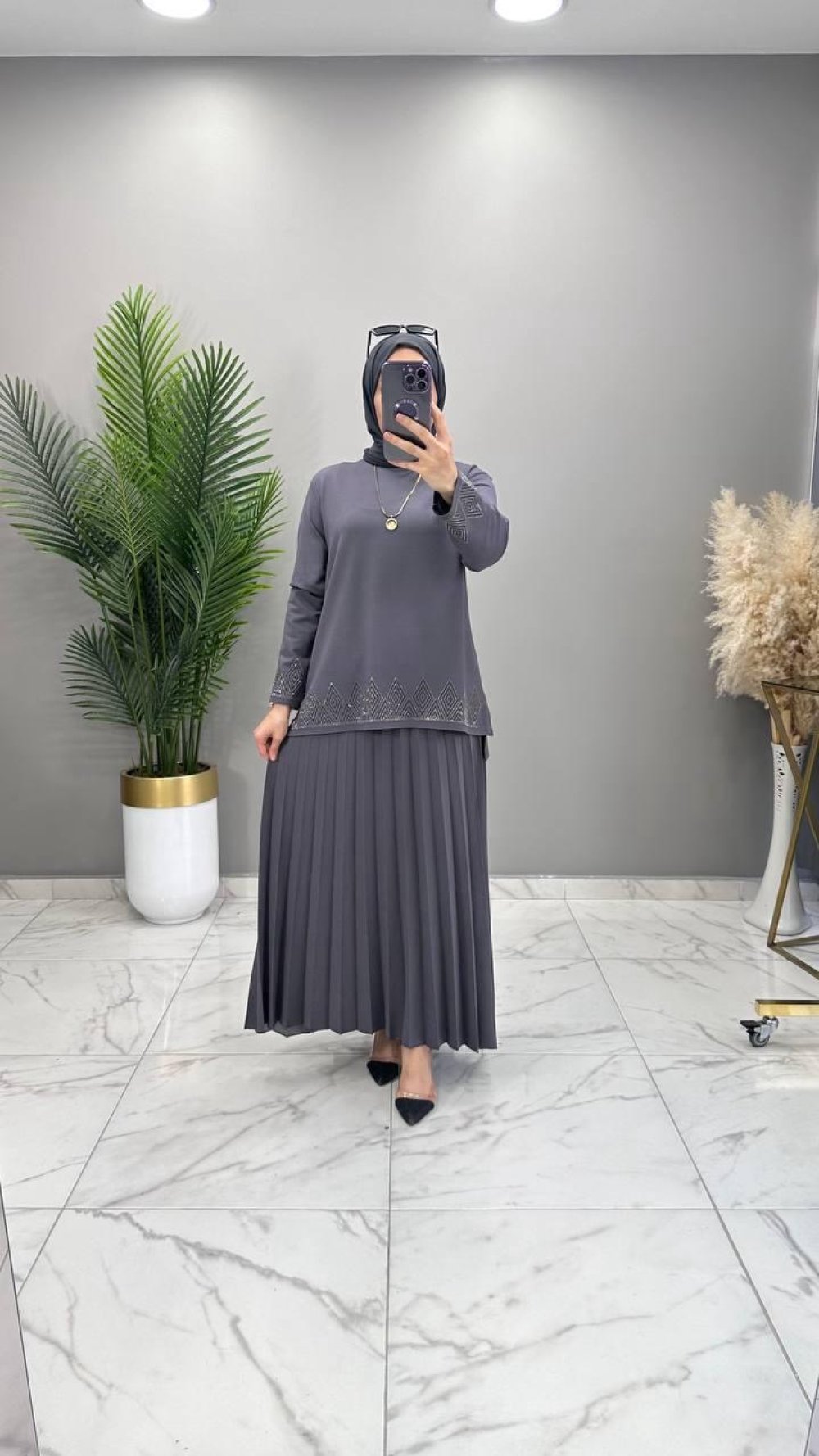 Cennet Taşlı Takım Gri