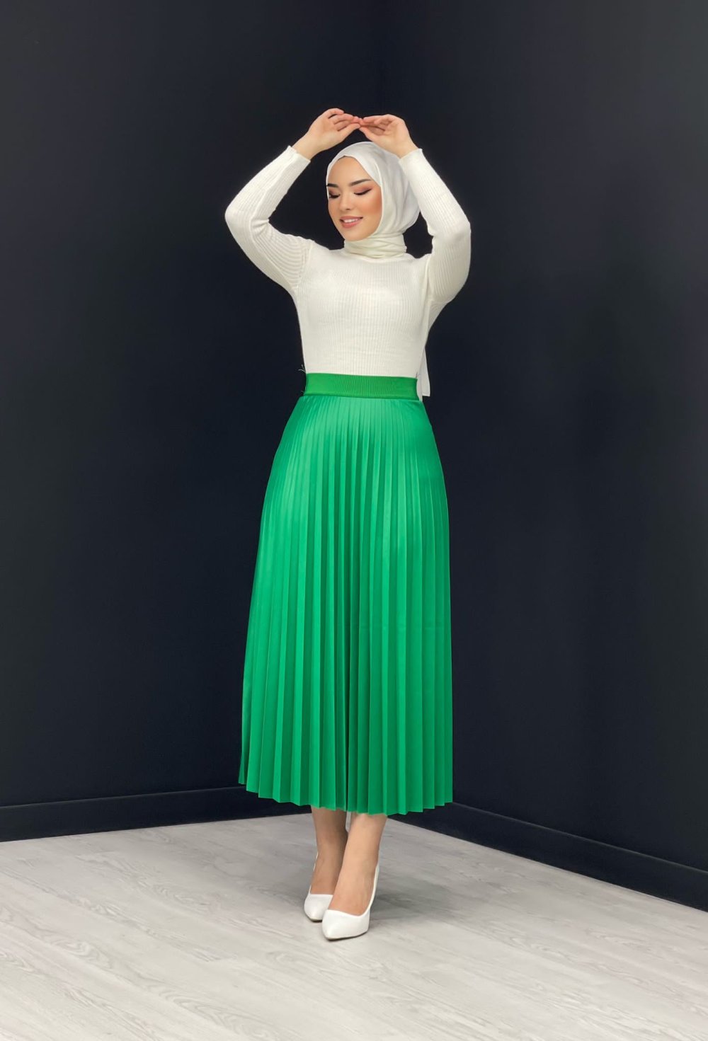 Deri Görünümlü Piliseli Etek