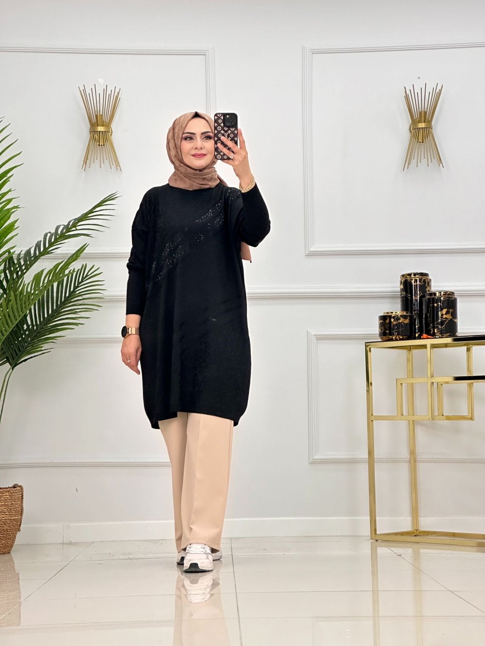 DİLAN TAŞLI TUNİK-SİYAH