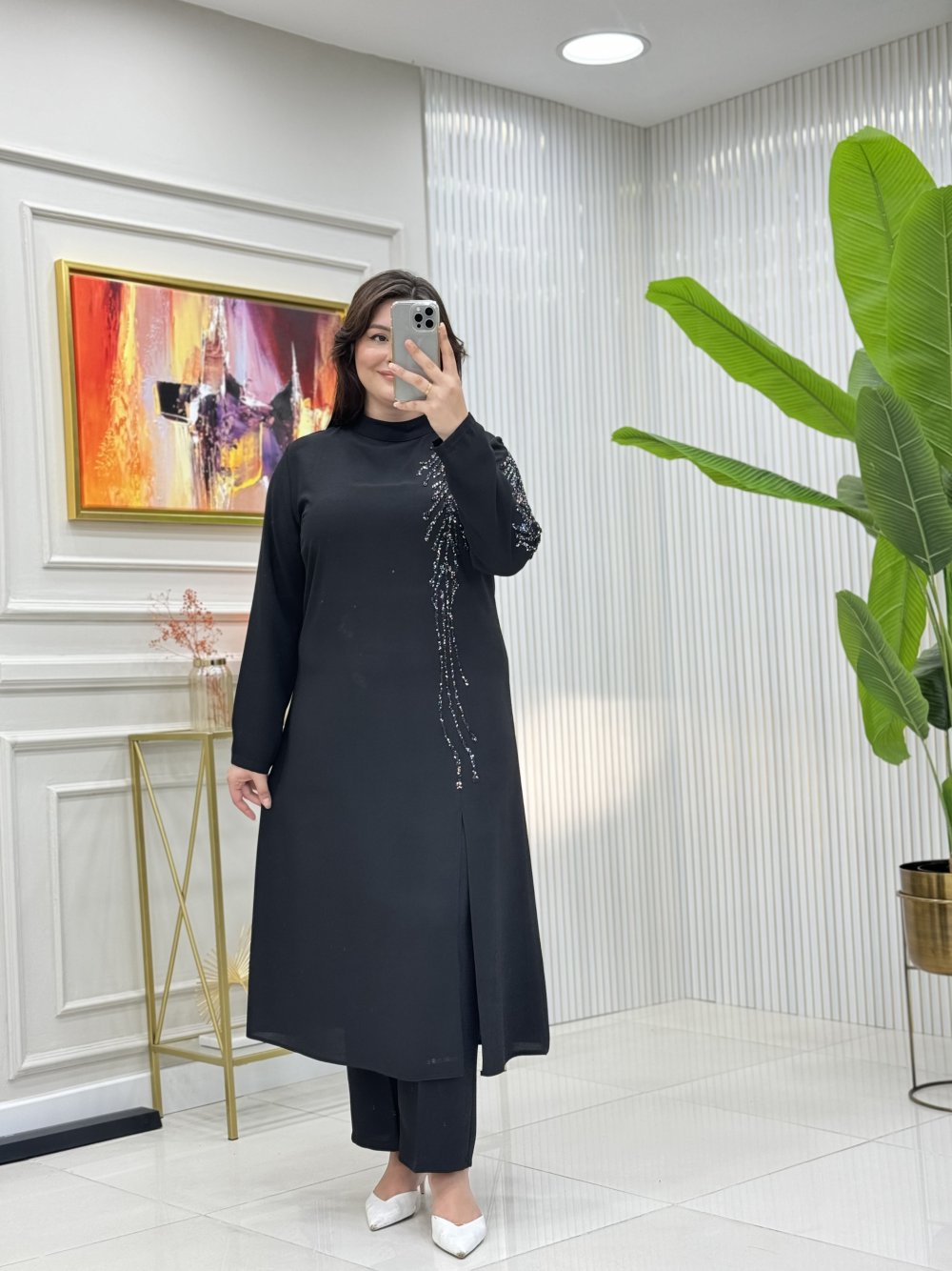 Krep kumaştır, pres taşlıdır.