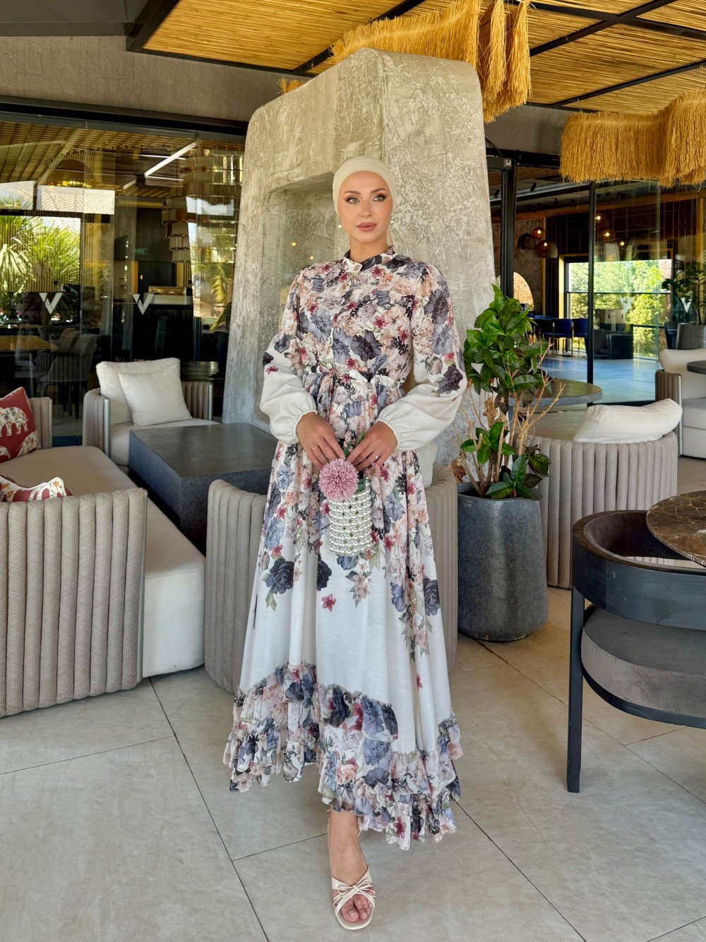Elbise Fırfır ve Çiçek Desen Detaylıdır.