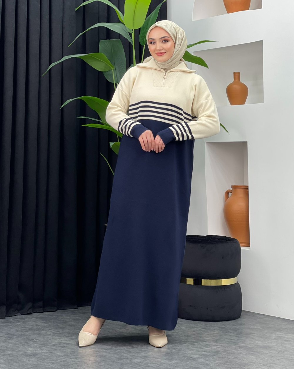 Duygu Çizgili Elbise