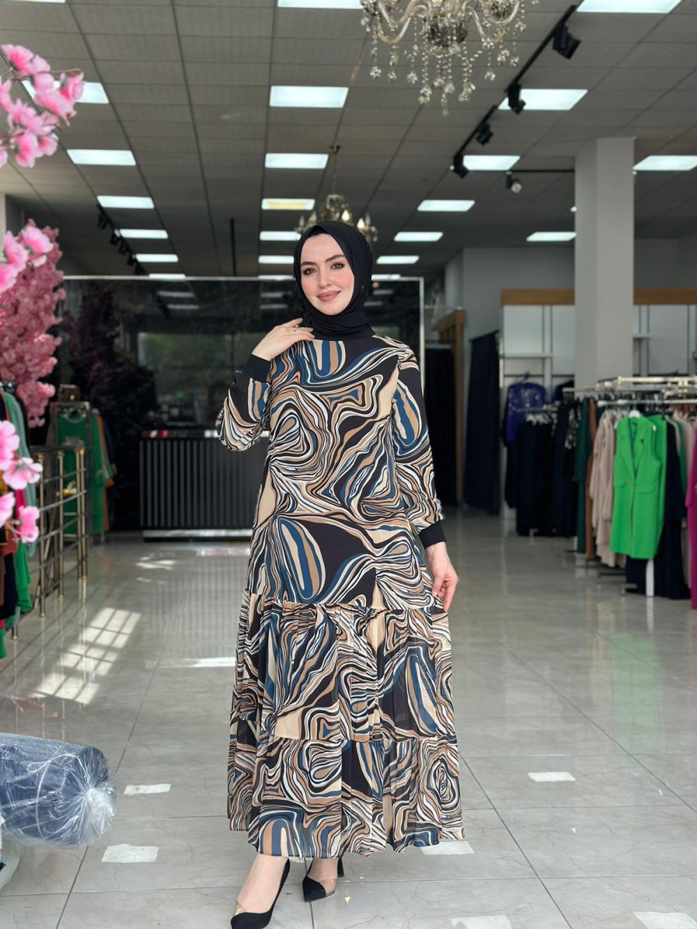 Kumaşı şifondur. İçi astarlıdır. Kuşağı yoktur.