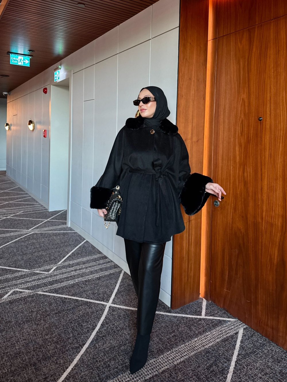 KabanınYakası ve Kolları Kürk Detaylıdır.