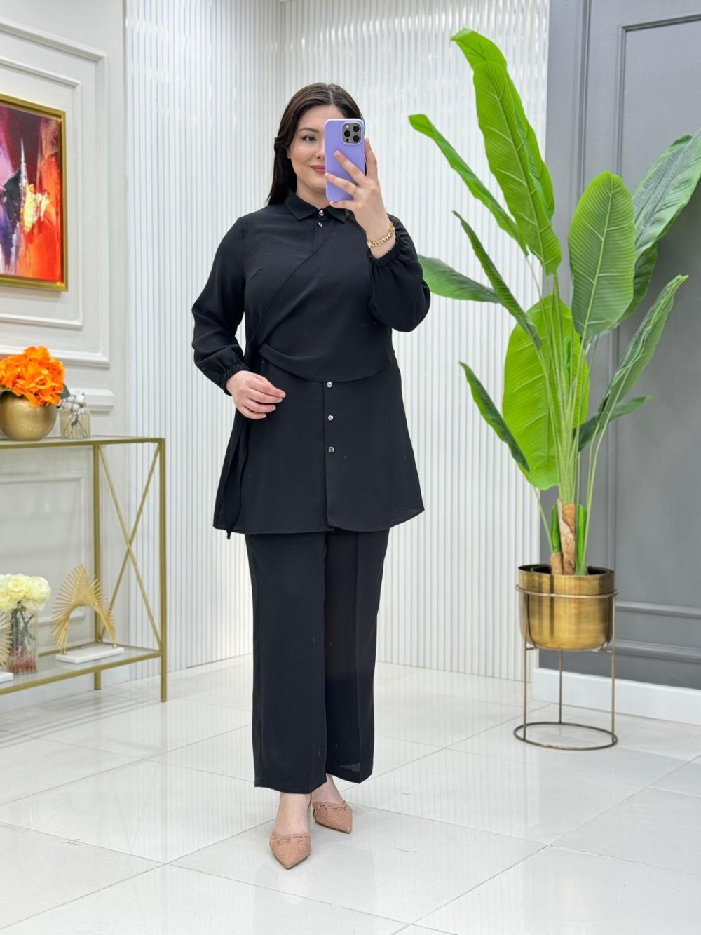 Tunik boydan düğmelidir, bağlama detaylıdır.