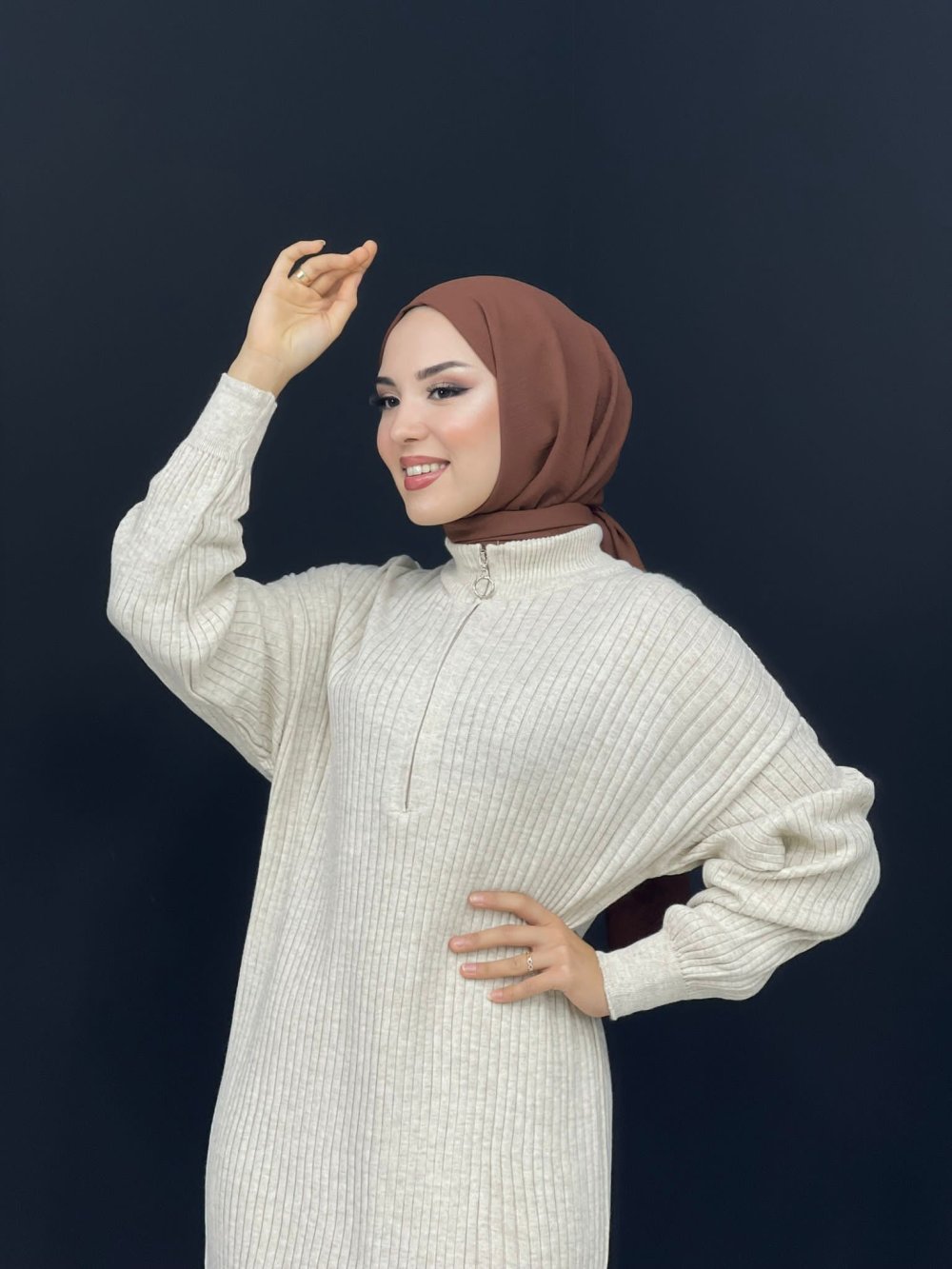 Fermuarlı Triko Elbise