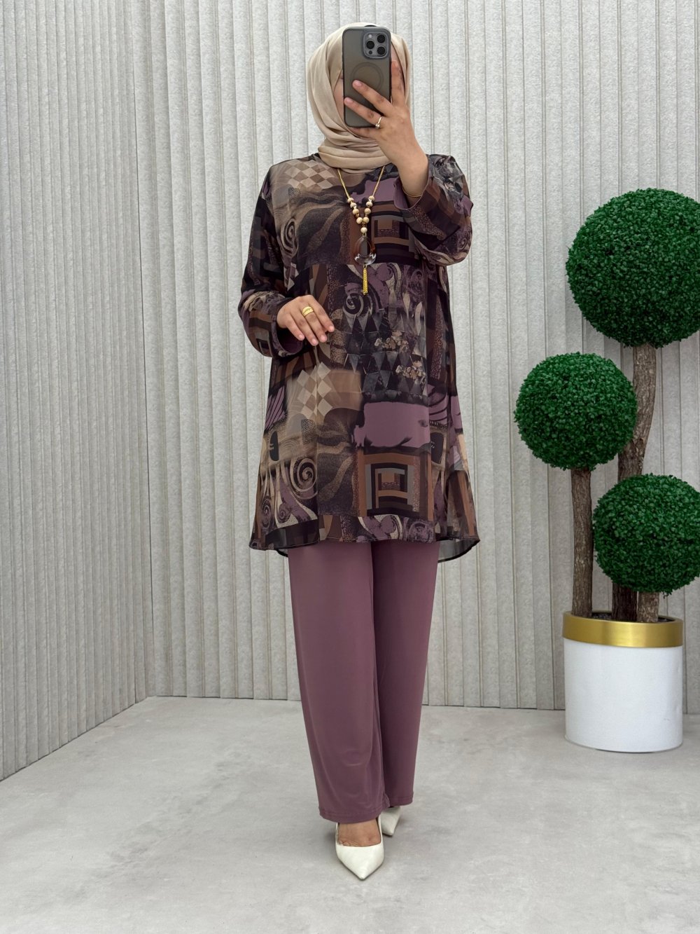 Tunik dijital baskılı şifon içi sandy kumaş
