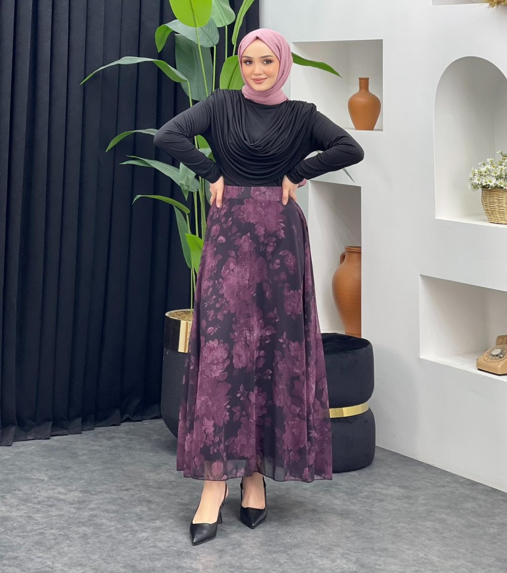 Gül Detaylı Şifon Etek