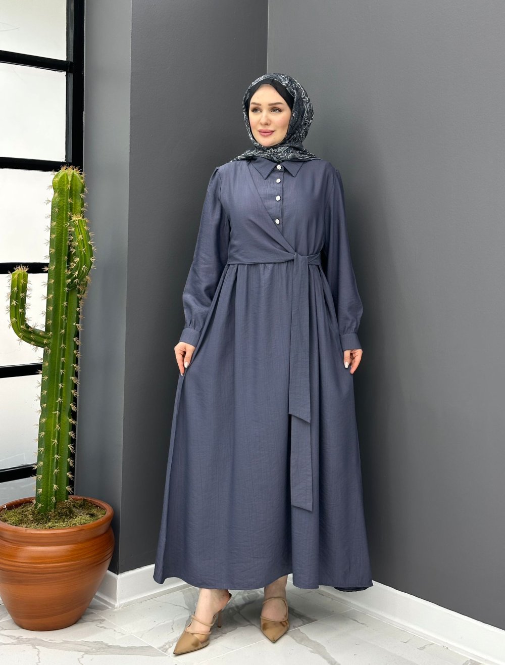 Gülben Elbise - Gri