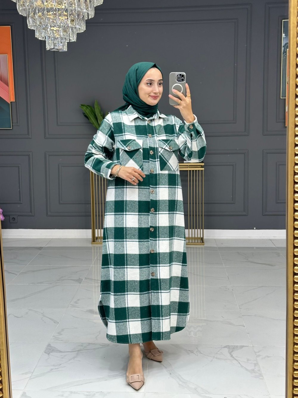 Gülbin gömlek elbise - yeşil