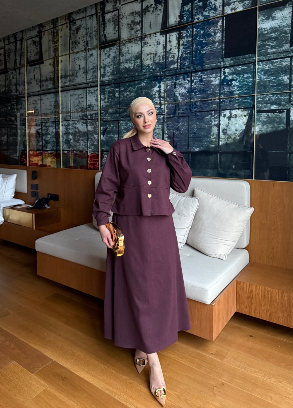 Gülce Etekli Takım Bordo