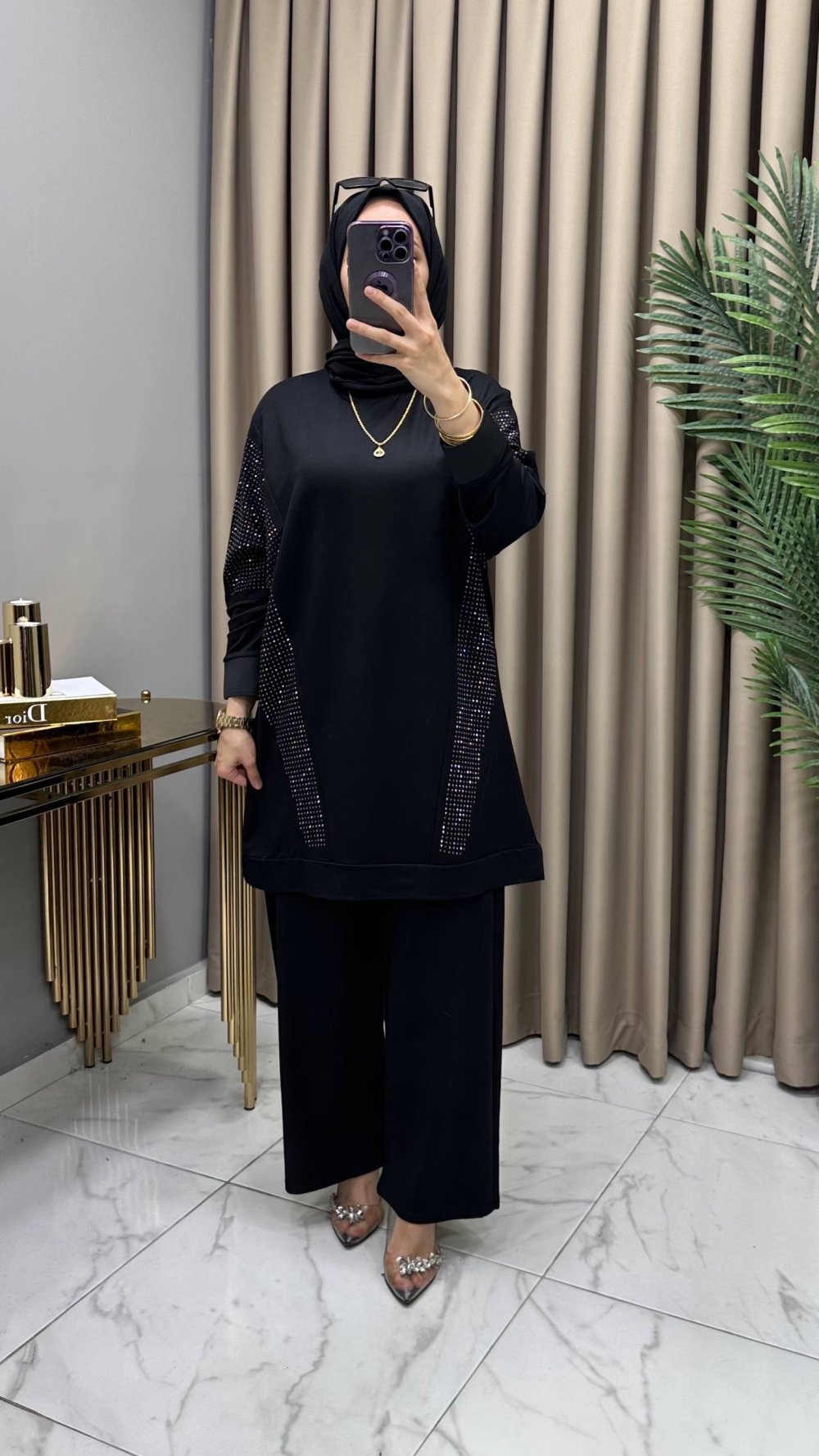 Hanımeli Taşlı Takım Siyah