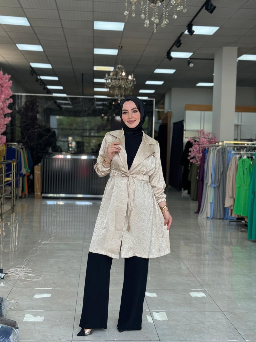 Jakarlı Kumaştır.Kuşaklı, Cepsizdir.