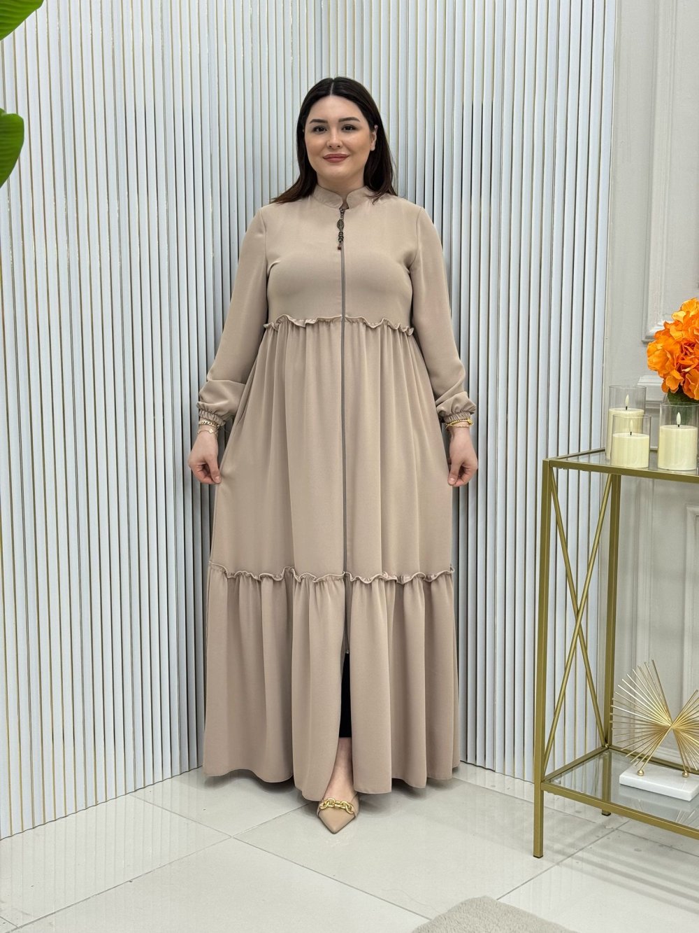 Boydan boya fermuarlıdır.