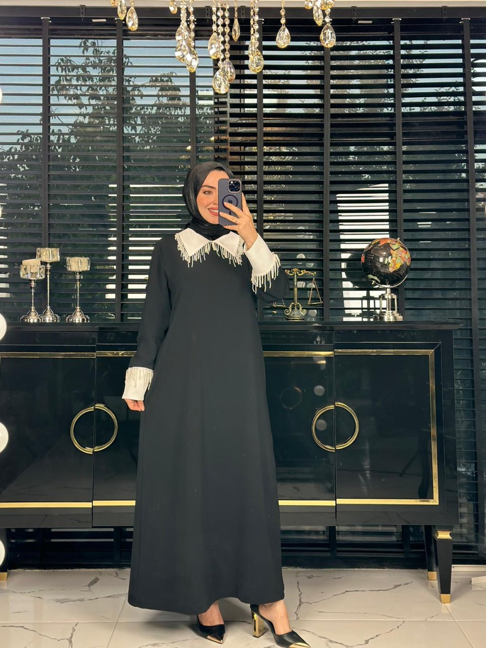 Kumaşı kreptir. Kolları satendir. İncileri dikmedir. El işçiliğidir.