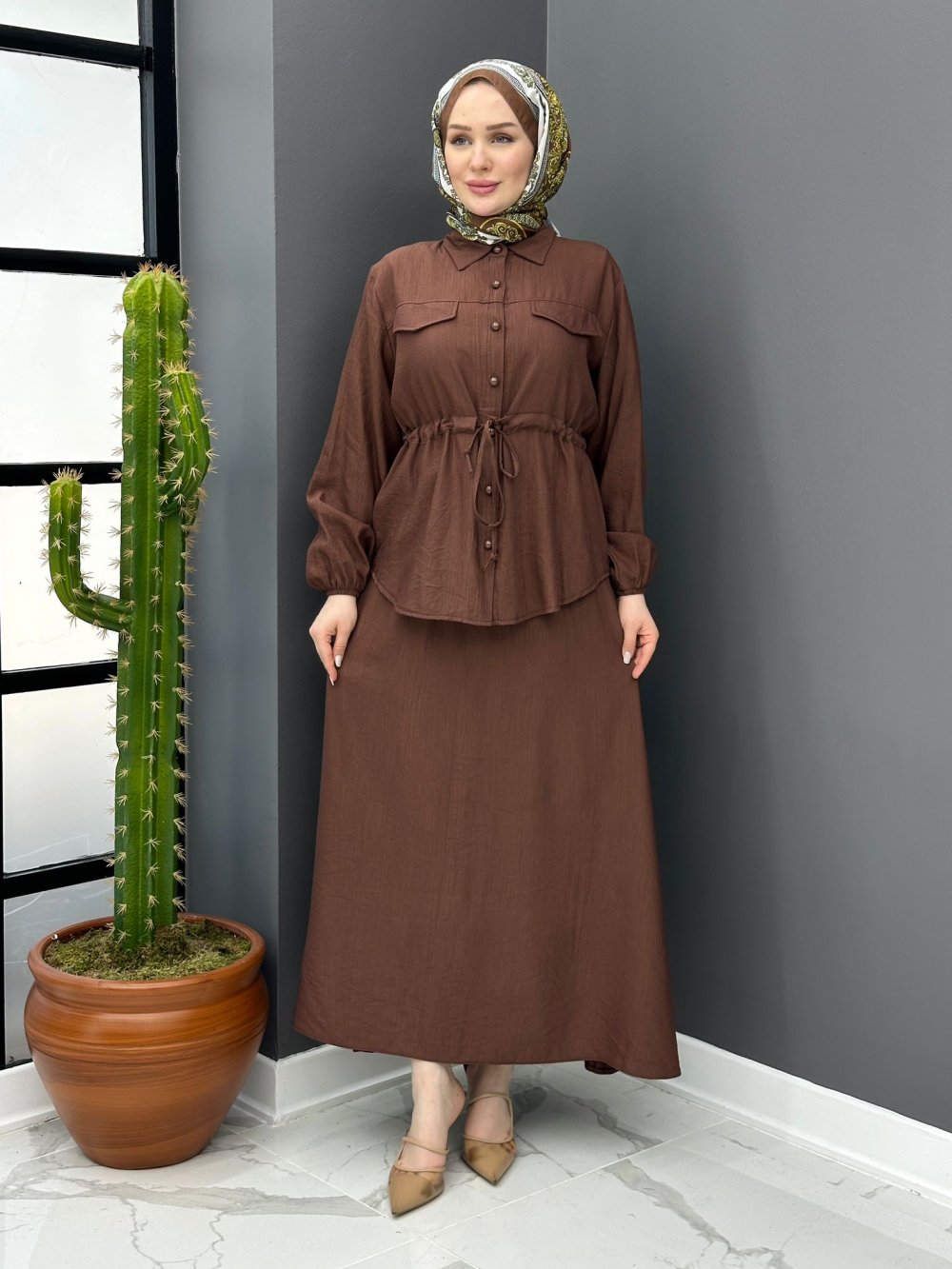 İnci Etekli Takım - Kahve
