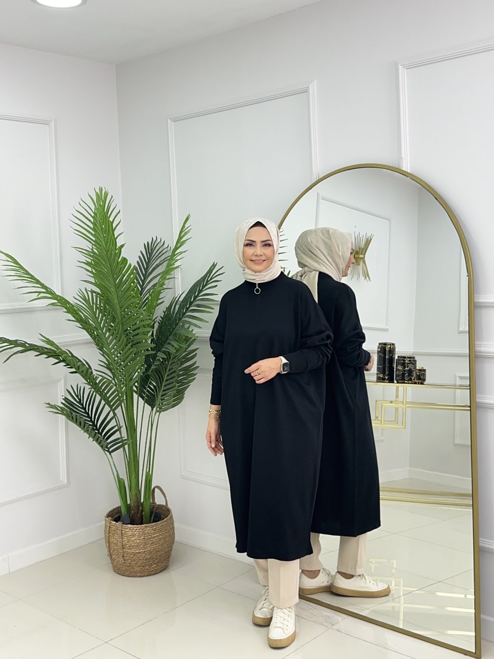 Basıc  merserize tunik; nefes alan dokusu ve rahat kalıbıyla her kombine uyum sağlar.