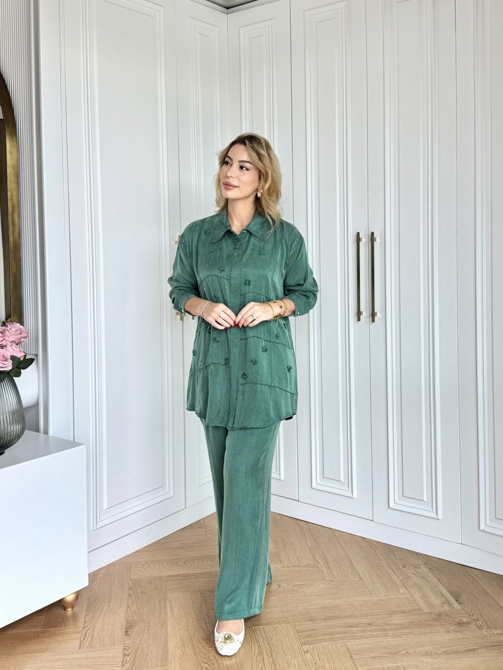 Gömlek Üzeri Gümüş Boncuk Ve Çiçek Detaylıdır