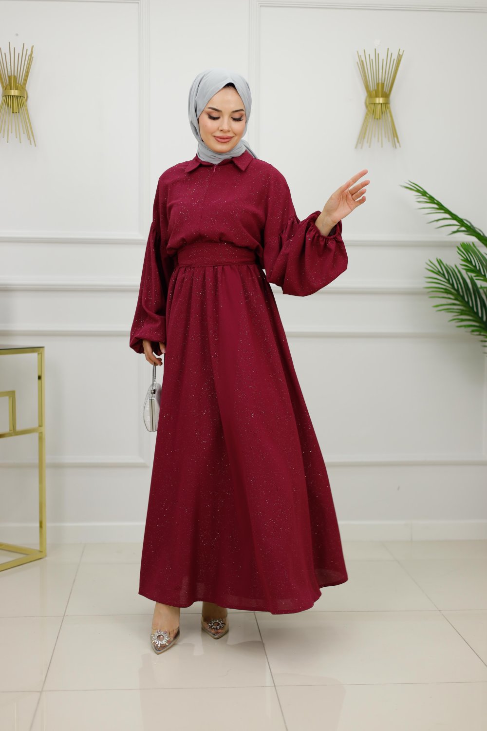IŞILTI ELBİSE-BORDO