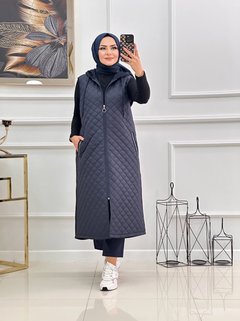 Kapitone yelek -Lacivert