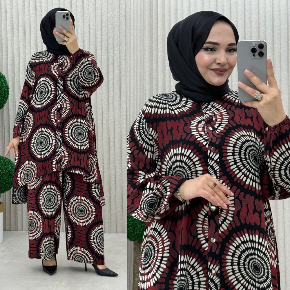 ?46 beden Göğüs 64 cm Tunik Basen 75 cm Pazu 27 cm Pantolon Bel açık 64 cm