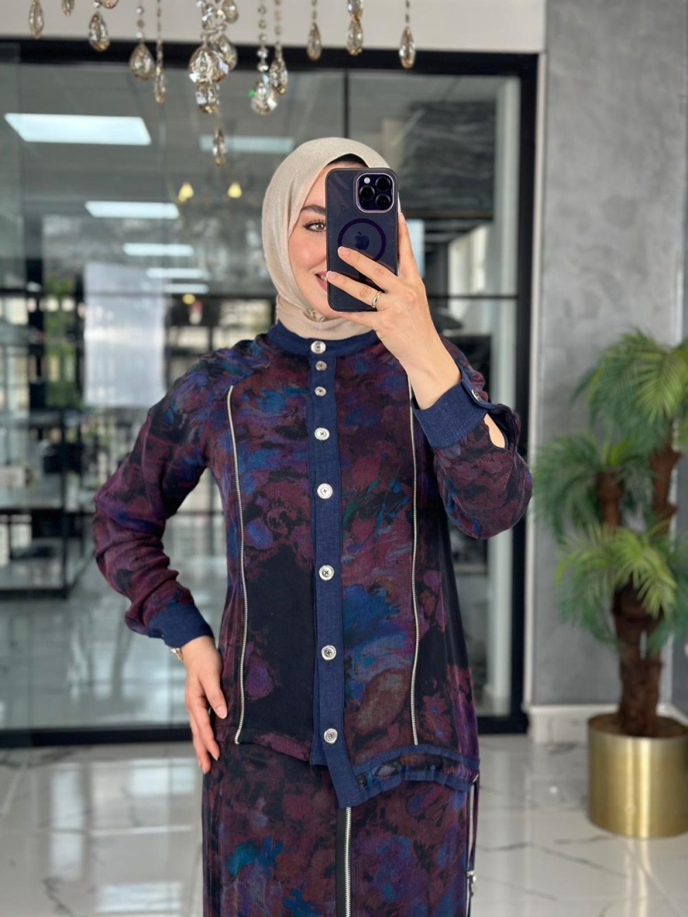 Taşlanmış İpek Qupra Kumaştır,Etek Boydan Fermuarlı, Gömlek Düğmeli Olup Yanlardan Fermuar Aksesuarlıdır.