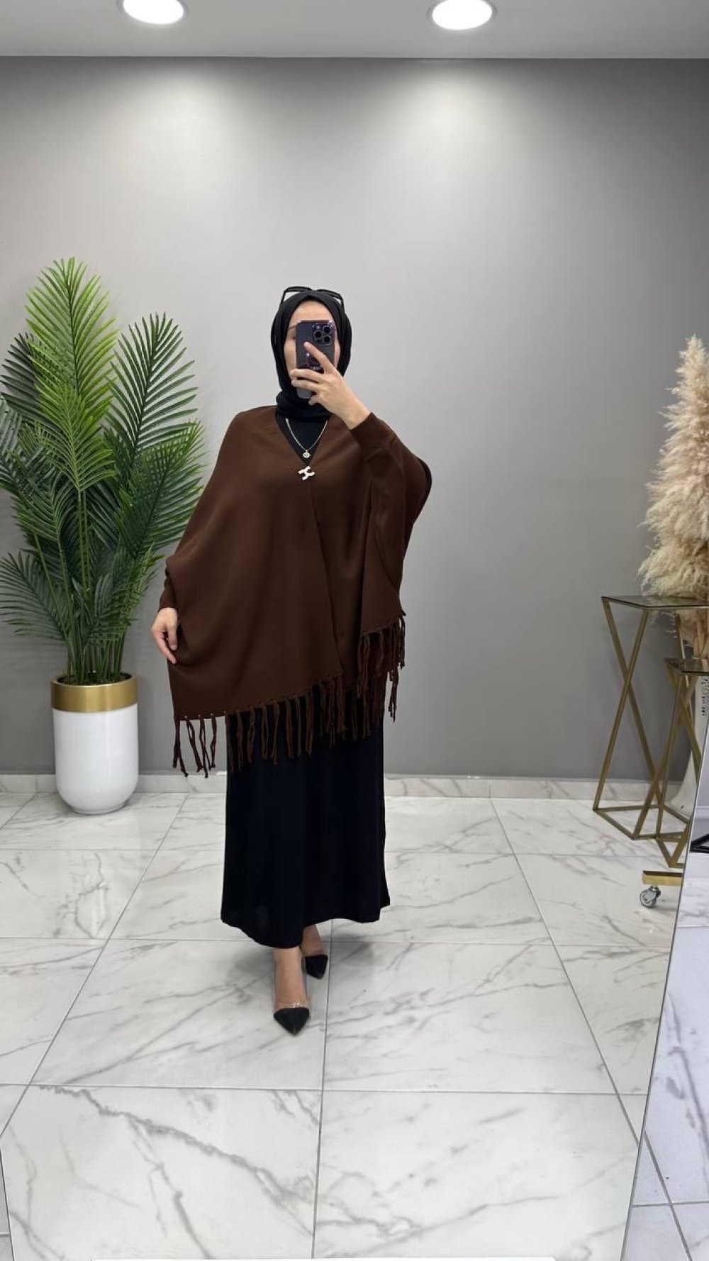 Kollu Şal Panço Kahve