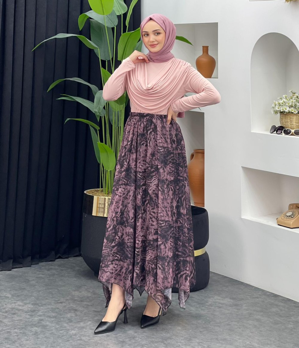 Leopar Desenli Şifon Etek
