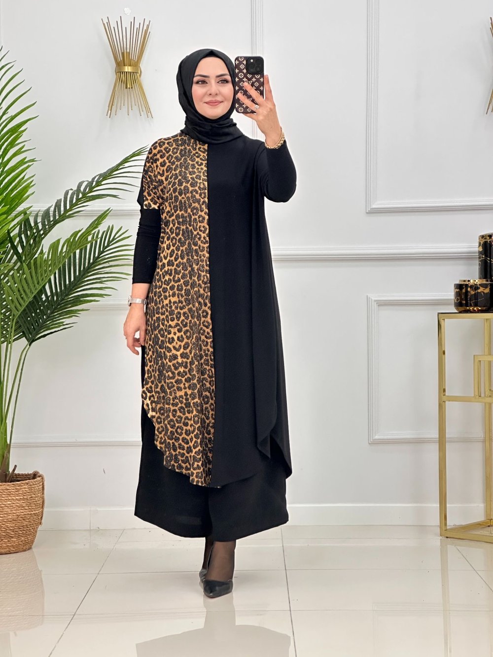LEOPAR TUNİK-SİYAH