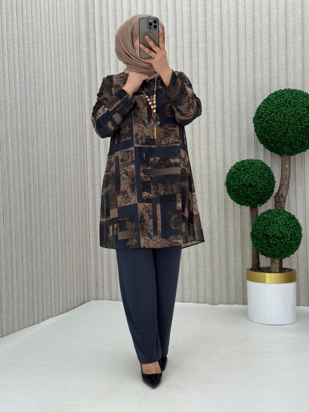 Tunik dijital baskılı şifon içi sandy kumaş