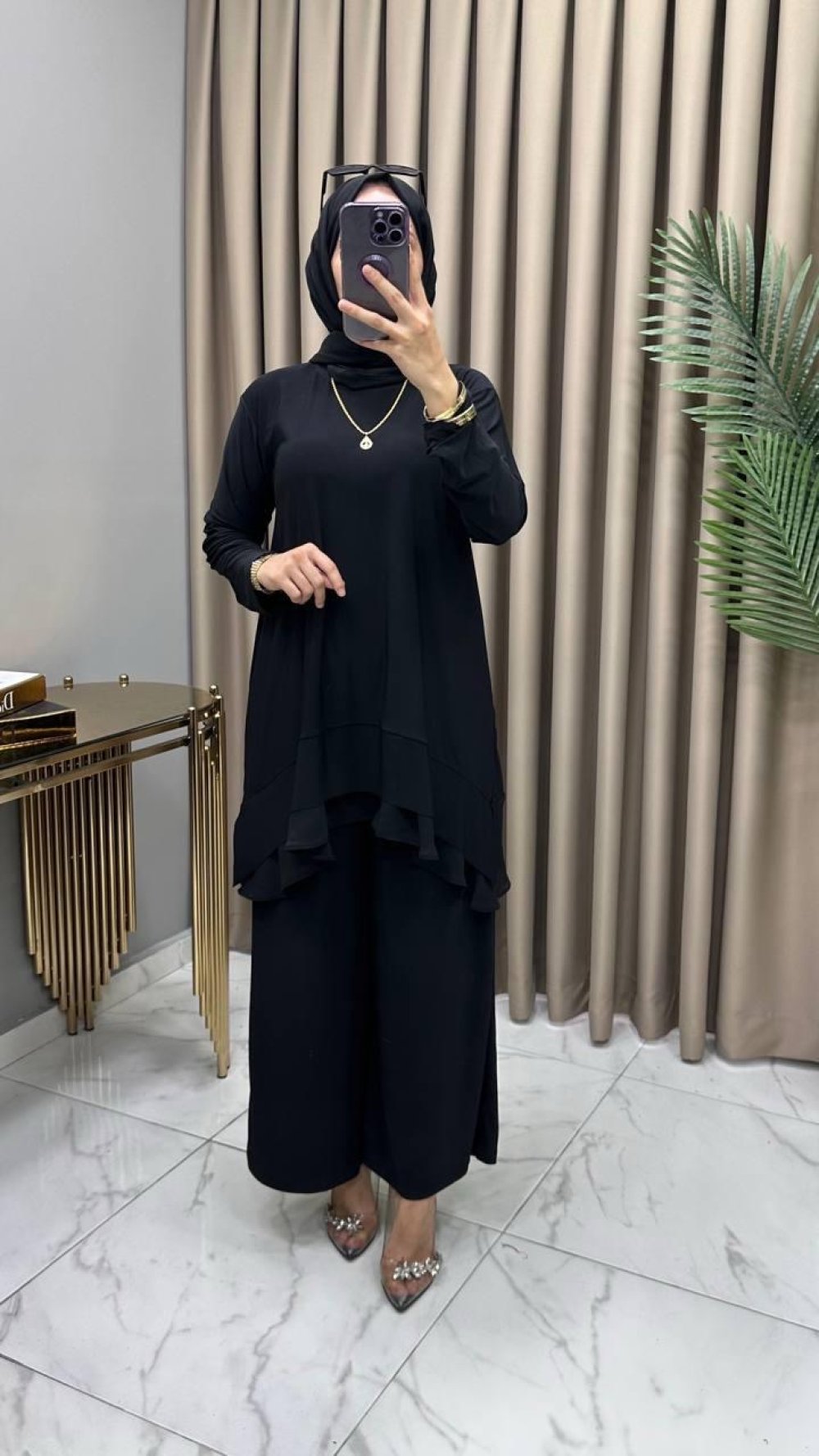 Tunik altı şifon detaylı (ön boy 75 cm / yan boy 90 cm)