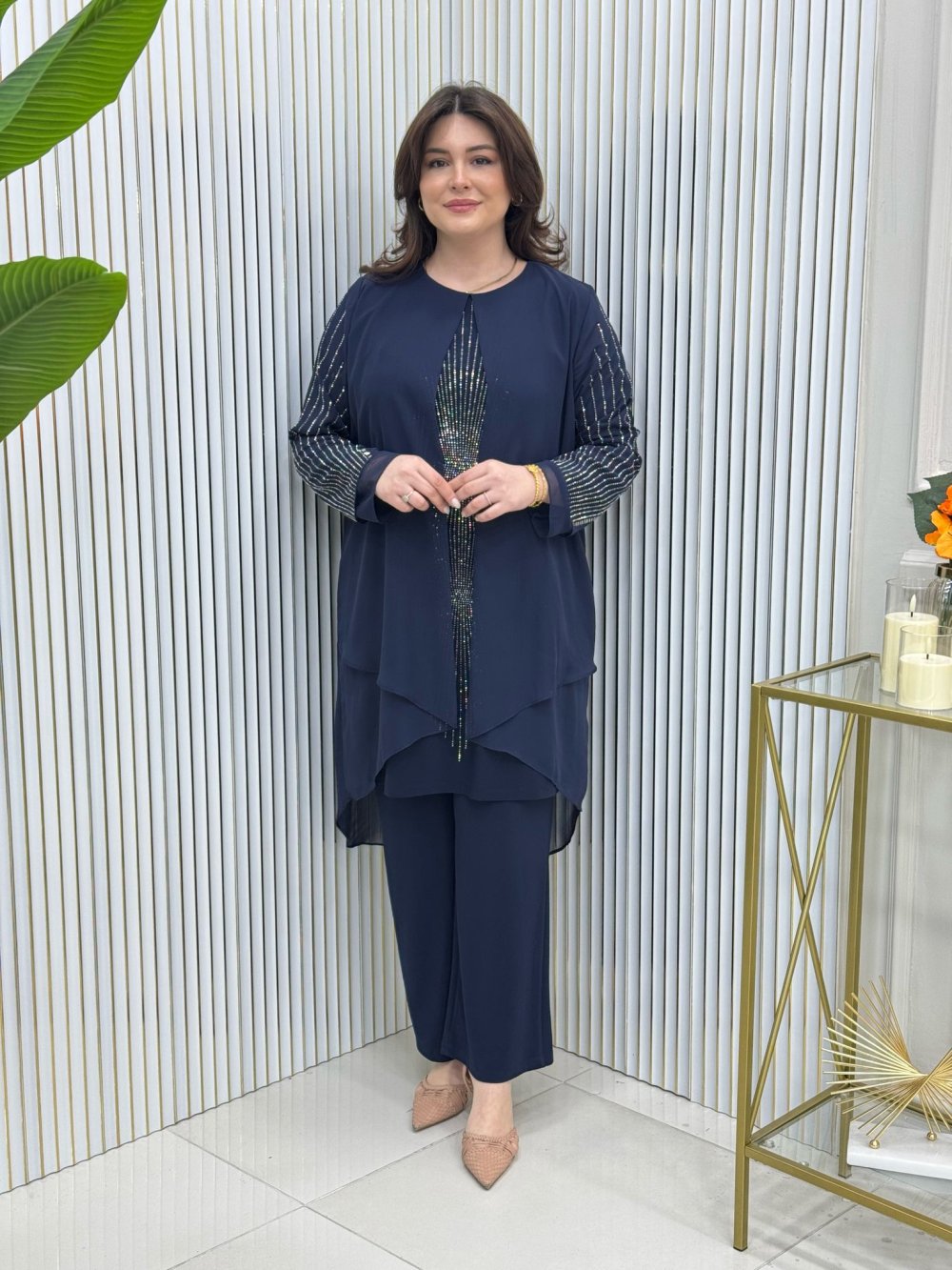 Dışı şifon içi sandy kumaştır.