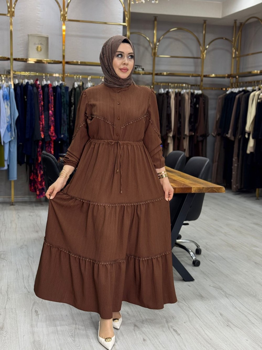 Kumaşı . Belden iplidir. Kol uçları lastiklidir. Önü yarım düğmelidir.