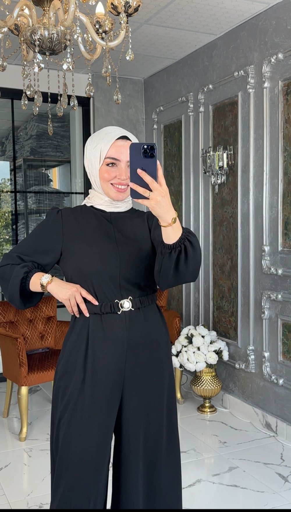 Krep kumaştır. Arka Fermuarlı. Ceplidir. Kol Ağzı Lastiklidir.