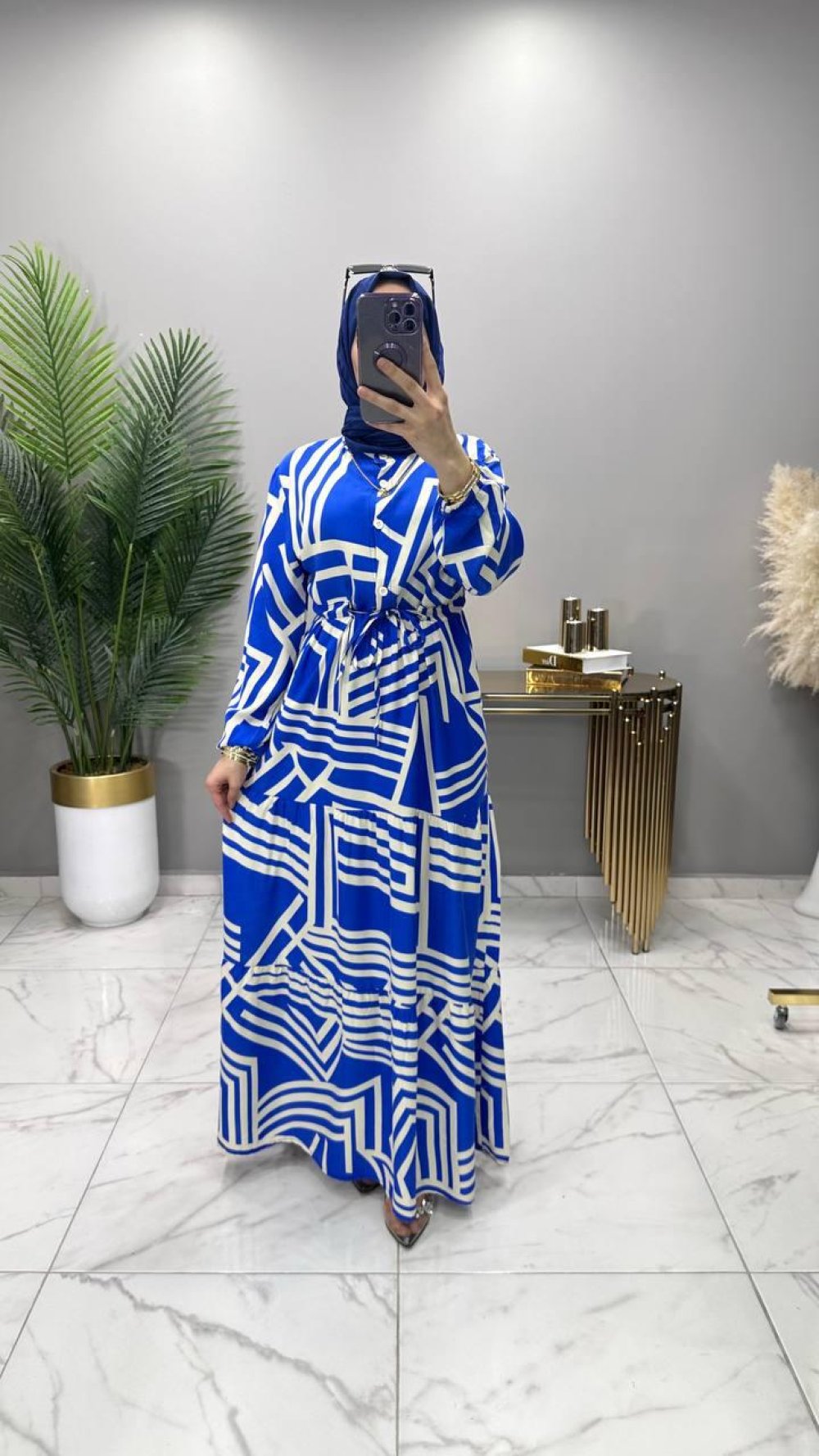 Üstten düğmeli ve büzgü bağcıklıdır , boy 145 cm