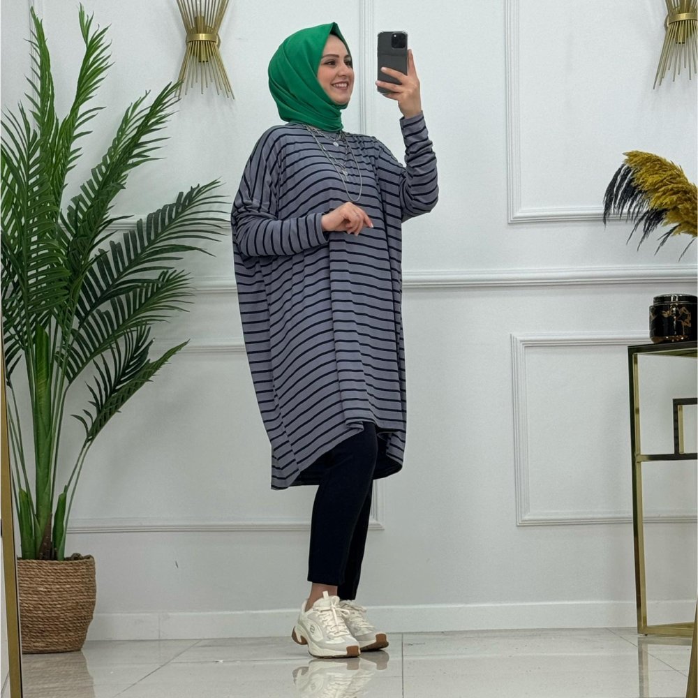 Viskon penye kumaş  çizgili Mira tunik